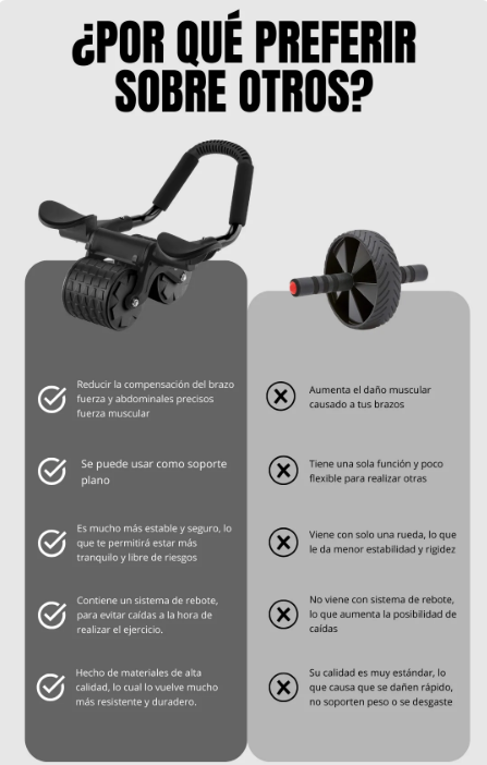 Su secreto es el diseño ergonómico. A diferencia de los rodillos tradicionales, el soporte para codos elimina la presión dañina en tu espalda y muñecas, obligando a que toda la fuerza se concentre 100% en tu abdomen.
